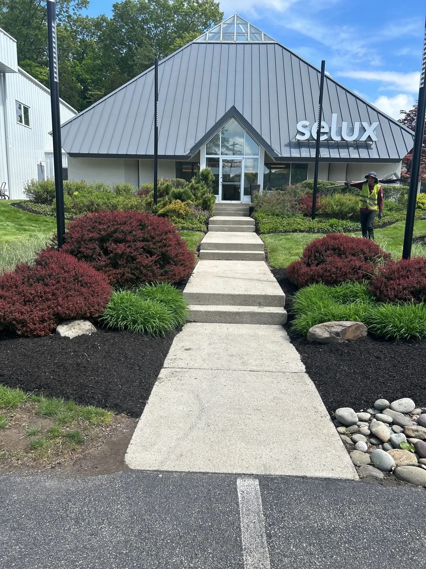 ~ Commercial Landscape Design and Installation: Transform your outdoor space into a beautiful, functional landscape, complete with patios, walkways, seating walls, fire pits, and more, to be enjoyed by your employees, tenants, customers, and visitors.
